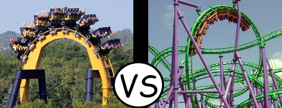 Batman The Ride – Six Flags Great America vs Jokers Jinx – Six Flags America – Roller Coasters
