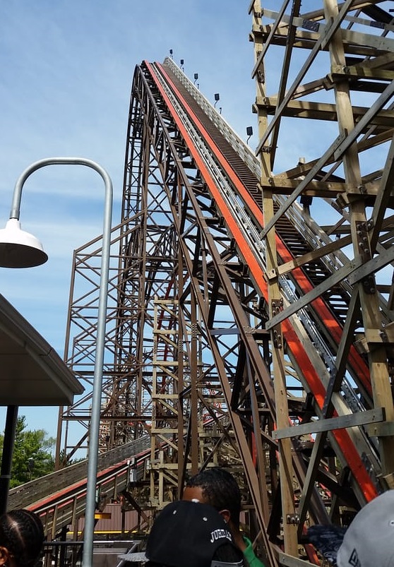 yes, that 165ft lift hill is just as steep as it looks……45 degrees to be exact!